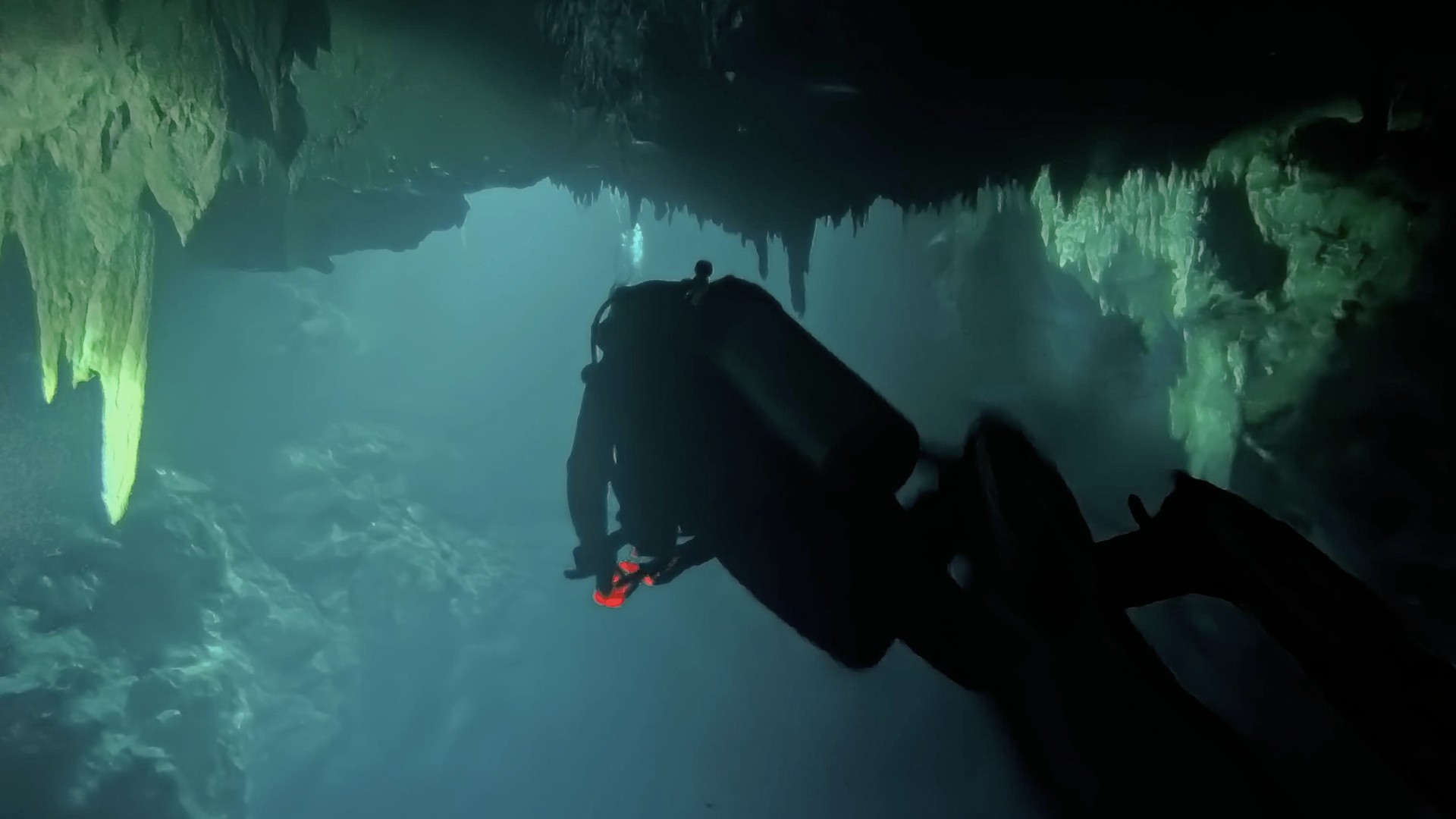 Lo más impresionante fue ver cómo raíces de árboles atravesaban la roca y llegaban hasta el agua, dándole un aspecto casi surrealista, como si estuviéramos buceando en una mezcla de selva y cueva. También aquí volvimos a encontrar la haloclina, pero combinada con cavernas oscuras y las luces artificiales de nuestras linternas, la sensación era mucho más intensa.