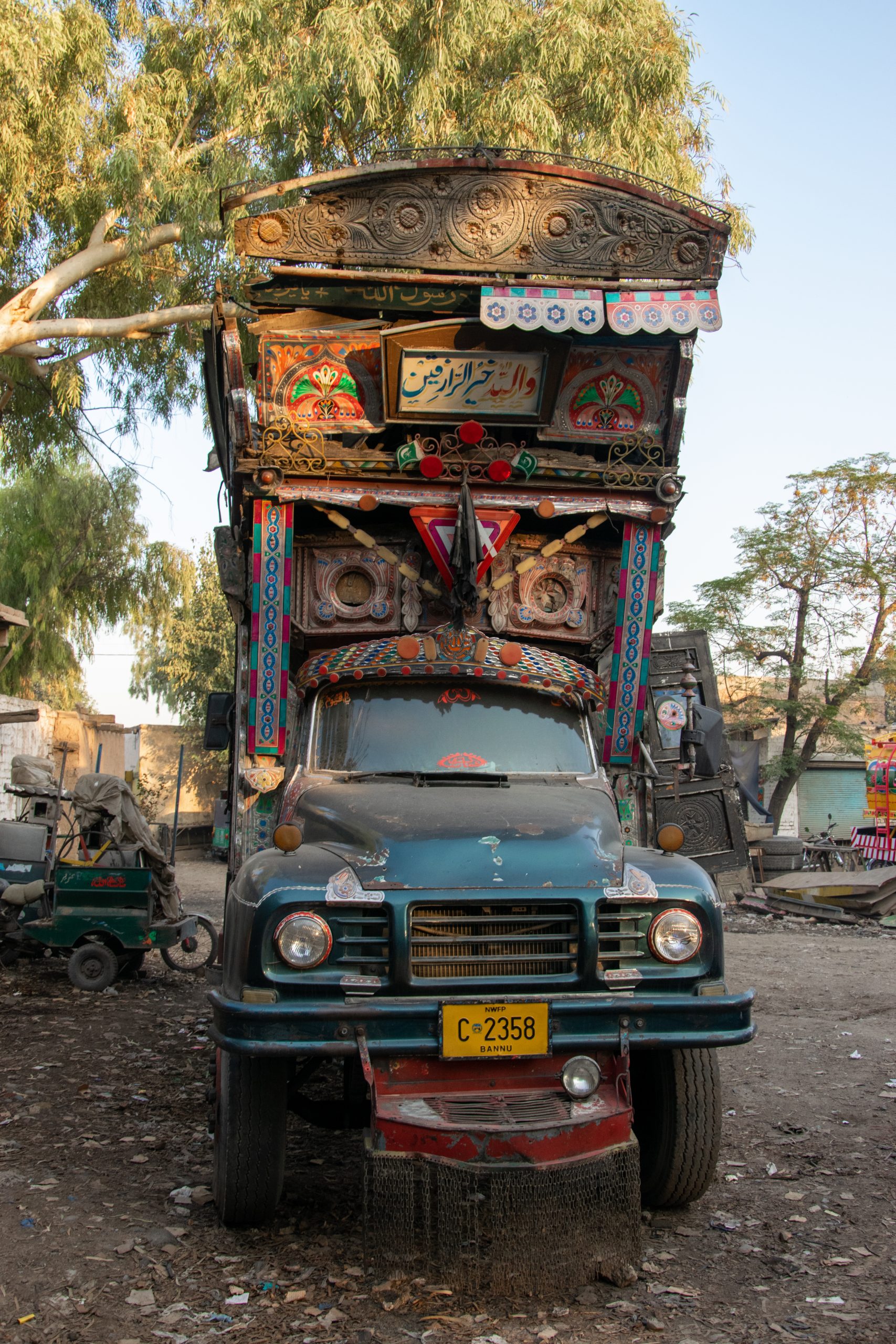Pintura, simbolismo y temáticas: Lo primero que llama la atención de los camiones pakistaníes son sus fuertes colores y los meticulosos detalles. Estos vehículos están adornados con paisajes, retratos, figuras mitológicas y patrones geométricos que transforman a cada camión en una galería ambulante. Los artistas, conocidos como «ustads», pasan semanas, a veces meses, trabajando en un solo camión, utilizando pinceles finos y una paleta de colores muy llamativos para crear estas increíbles obras de arte.