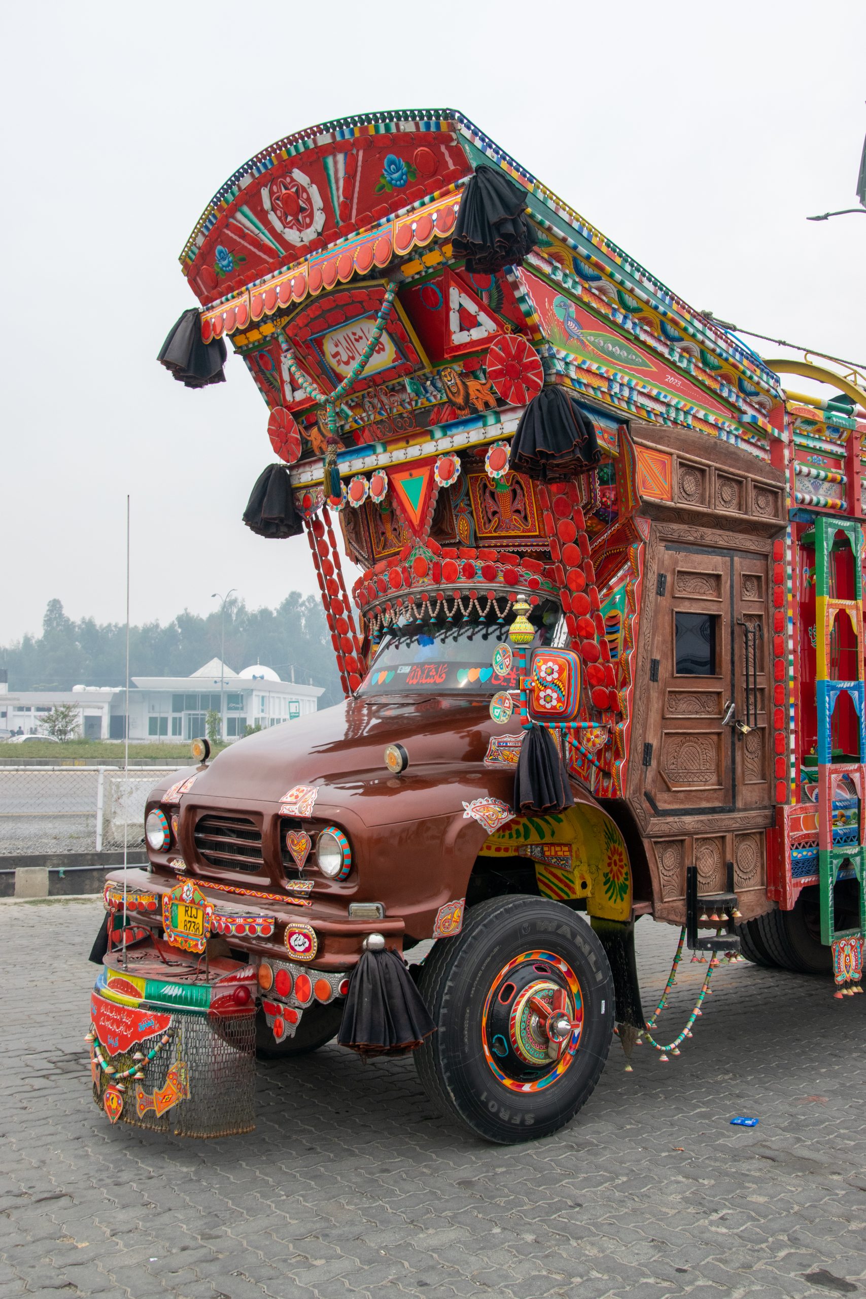 Decoraciones Adicionales: No es solo la pintura y la madera lo que hace que estos camiones sean tan llamativos. También están adornados con espejos, luces, cadenas y banderas. Las campanas y borlas cuelgan de los bordes, creando un espectáculo de color y sonido mientras el camión se mueve por las carreteras. Cada camión es una manifestación única del estilo y la personalidad del conductor, convirtiendo cada viaje en una declaración artística.