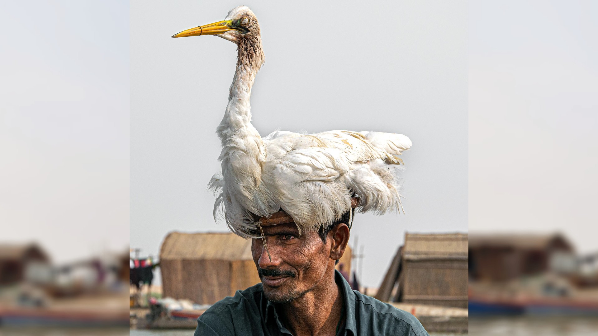 Los hombres Mohana se ponen un ave disecada en la cabeza para