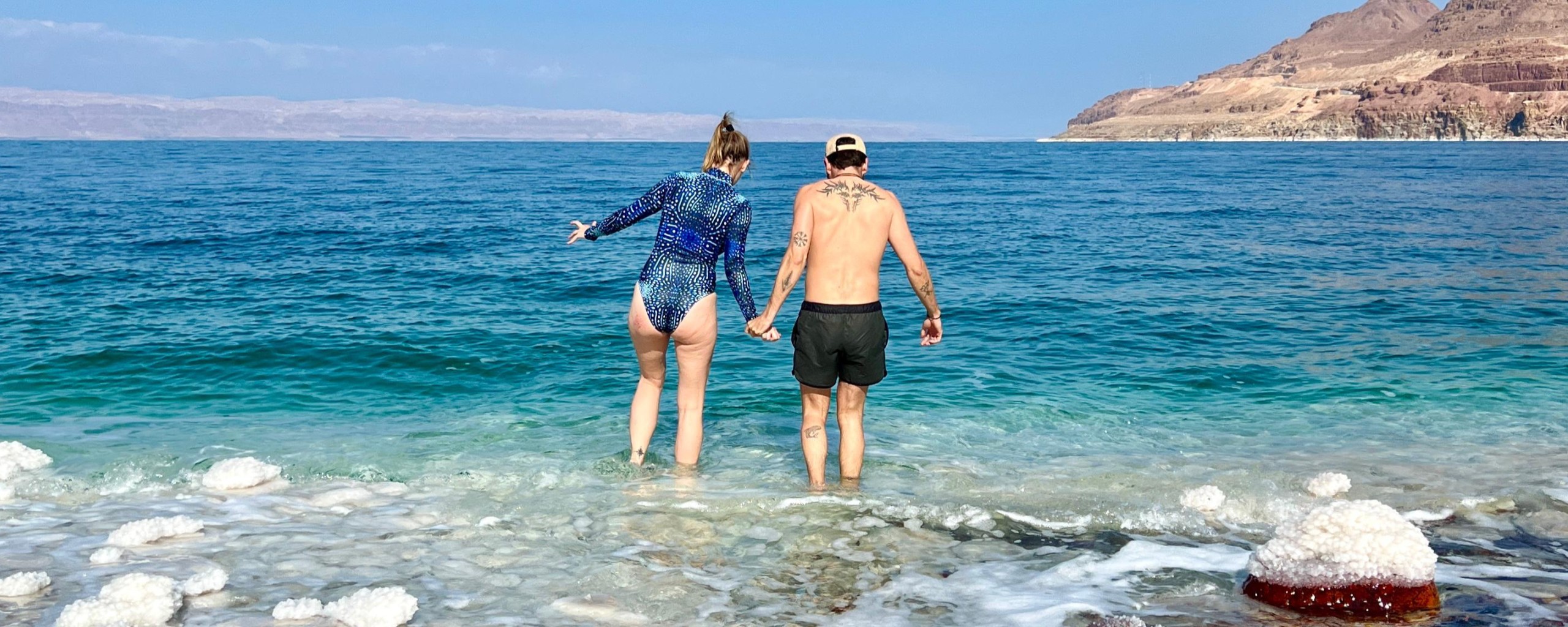 Cuando viajamos a Jordania teníamos claro que queríamos darnos un baño en el famoso Mar Muerto. Lo habíamos visto mil veces en fotos, pero una cosa es verlo… y otra muy distinta es estar ahí, flotando sin esfuerzo en ese agua tan salada y rara.